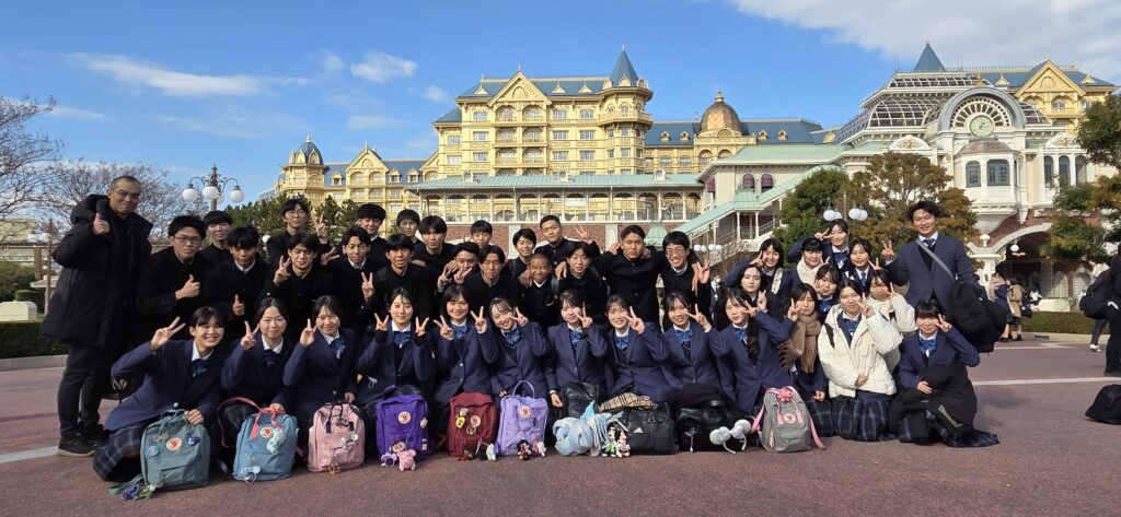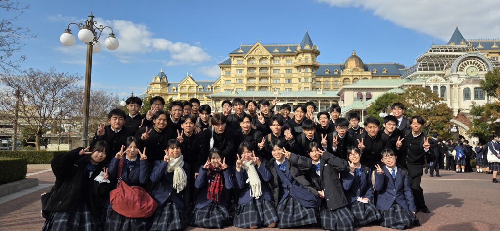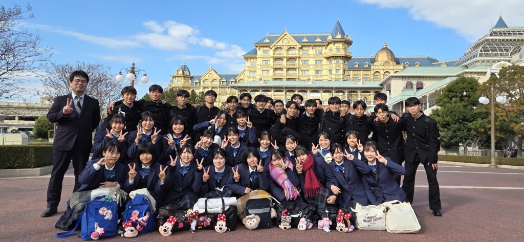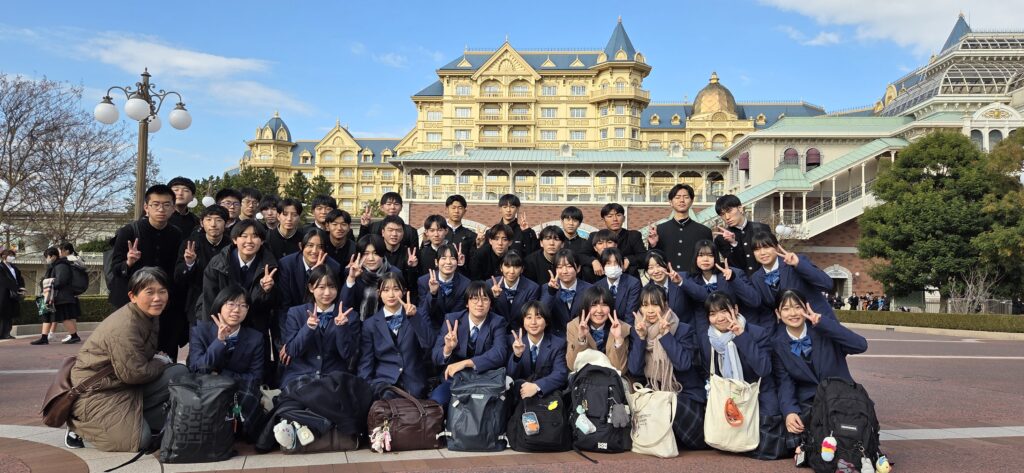生徒が待ちに待ったディズニー研修の前に、ディズニーでキャストとして働かれていた高坂様から本校の校是や学年目標に即した話をしていただき、とても参考になりました。