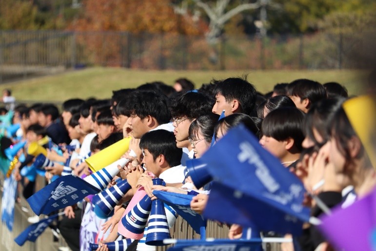 11月16日(日)、かきどまり陸上競技場で、花園の出場権をかけて、全国高校ラグビーフットボール大会長崎県予選決勝が行われ、長崎北陽台高校と激突しました。模擬試験を終えた3年生をはじめ、多くの生徒が応援に駆けつけ、熱い声援を送りました。前半は、トライラインぎりぎりまで攻め込むもあと一歩届かず、両チームとも無得点で折り返したものの、後半にトライを許し、0対12で惜敗しました。保護者・OBの方々をはじめ、スタンドからも多くの応援をいただき、ありがとうございました。
